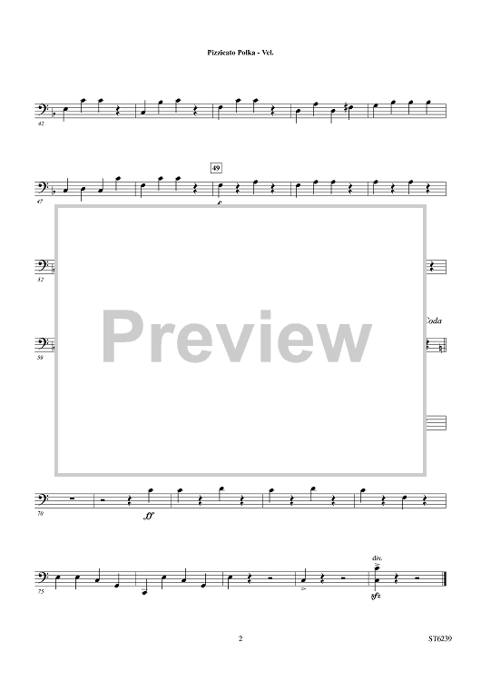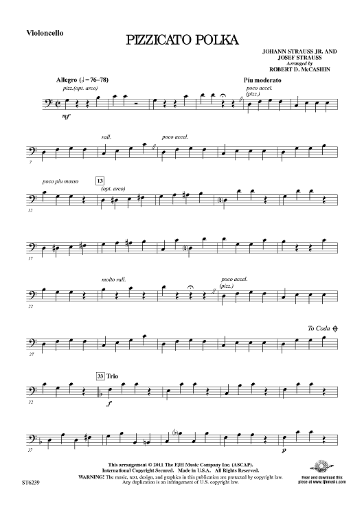 Digital Sheet Music for Pizzicato Polka - Violoncello by Josef Strauss, Robert D. McCashin, Johann Strauss, Jr. scored for String Orchestra; id:421923