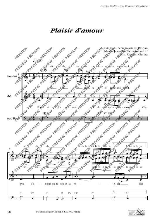 Digital Sheet Music for Plaisir D'Amour by Carsten Gerlitz, Jean-Paul Schwarzendorf scored for Female Choir (ssa); id:493272