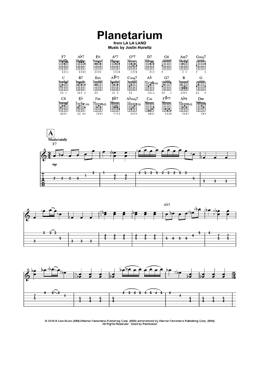Digital Sheet Music for Planetarium - from La La Land by Justin Hurwitz scored for Easy Guitar Tab; id:463910