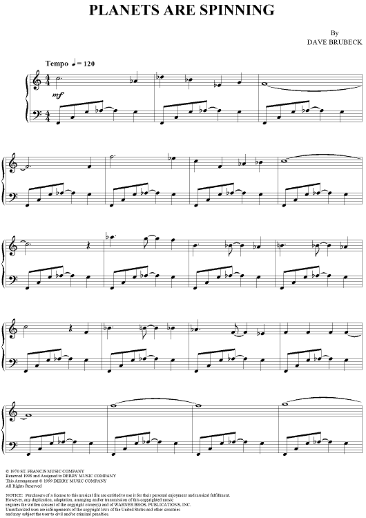 Digital Sheet Music for Planets Are Spinning by Dave Brubeck scored for Piano Solo; id:275569
