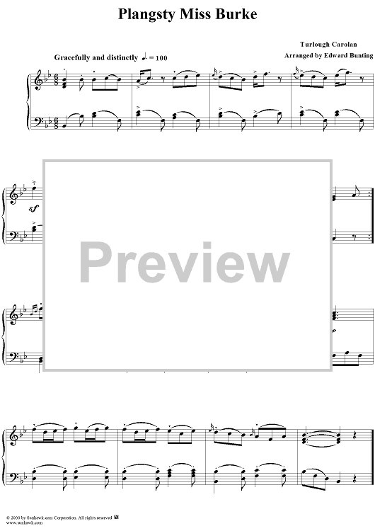 Digital Sheet Music for Plangsty Miss Burke by , Turlough O'Carolan, Edward Bunting scored for Piano Solo; id:203989