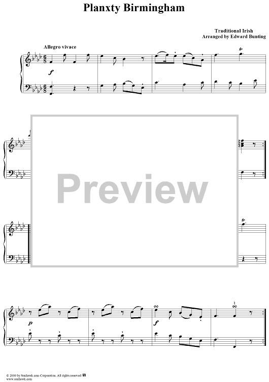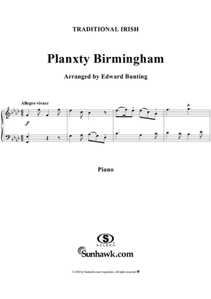Digital Sheet Music for Planxty Birmingham by , Edward Bunting, Traditional scored for Piano Solo; id:260469
