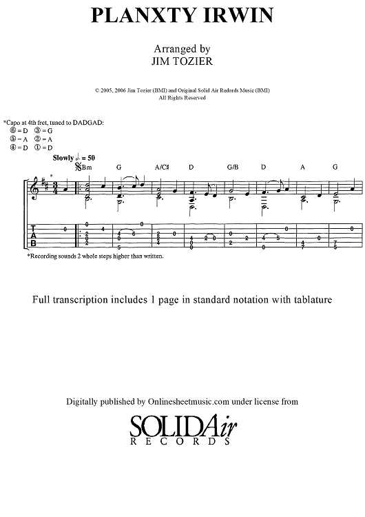 "Planxty Irwin (With Embedded Audio)" Sheet Music by Jim Tozier