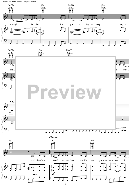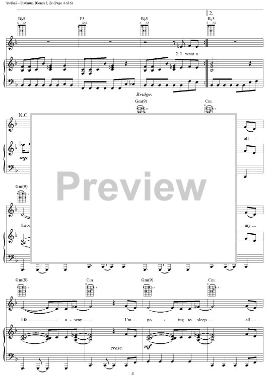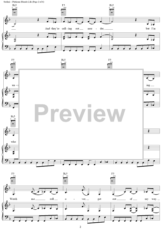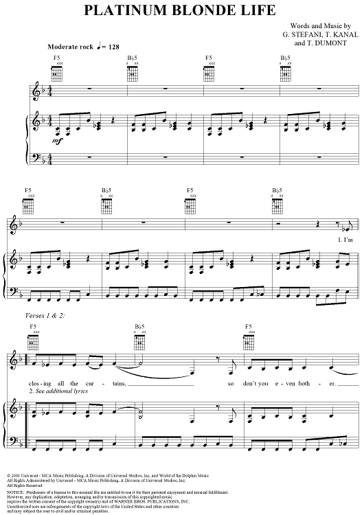Digital Sheet Music for Platinum Blonde Life by No Doubt, Tom Dumont, Tony Kanal, Gwen Stefani scored for Piano/Vocal/Chords; id:293585