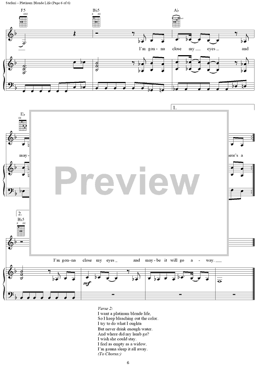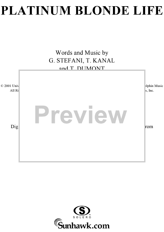 "Platinum Blonde Life" Sheet Music by No Doubt