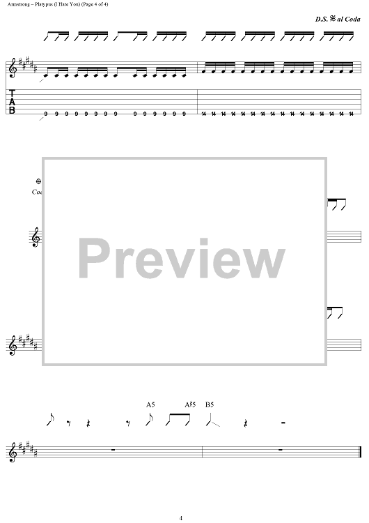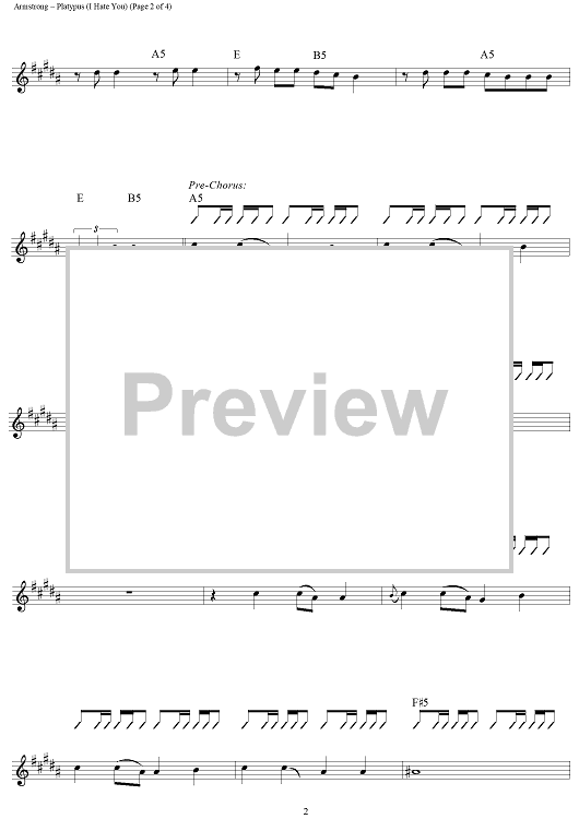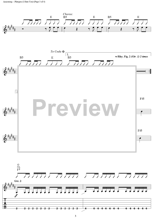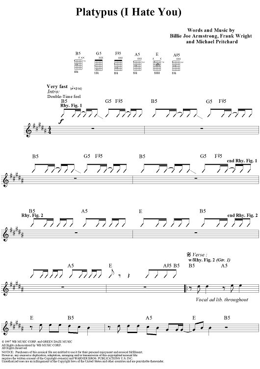 Digital Sheet Music for Platypus (I Hate You) by Billie Joe Armstrong, Frank Edwin Wright III, Michael Pritchard, Green Day scored for Guitar Tab/Vocal; id:96042