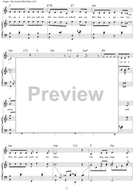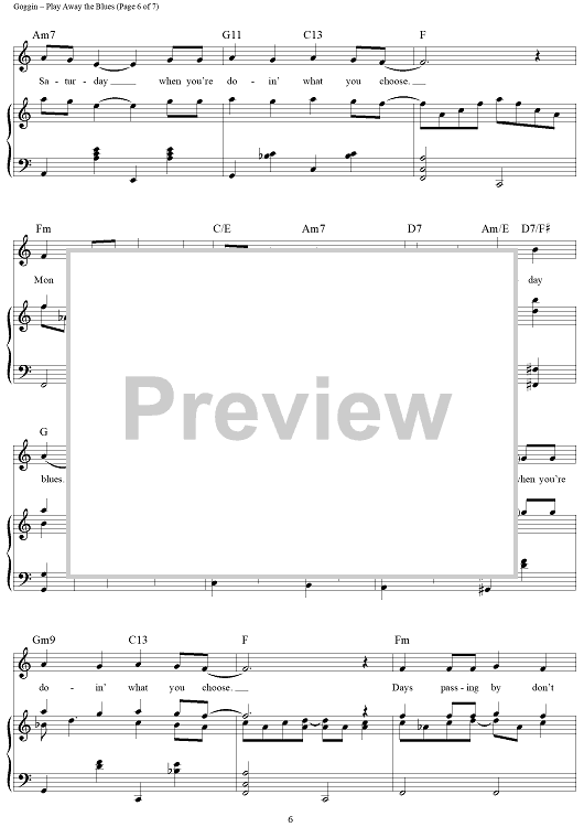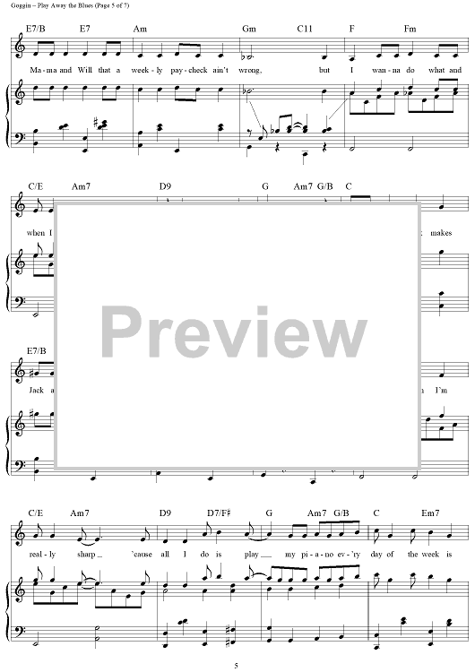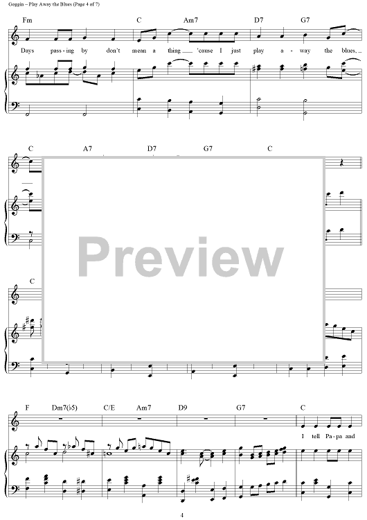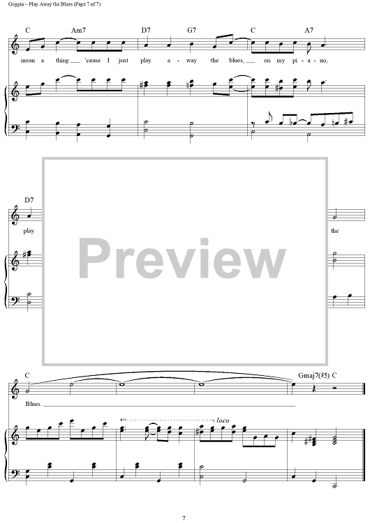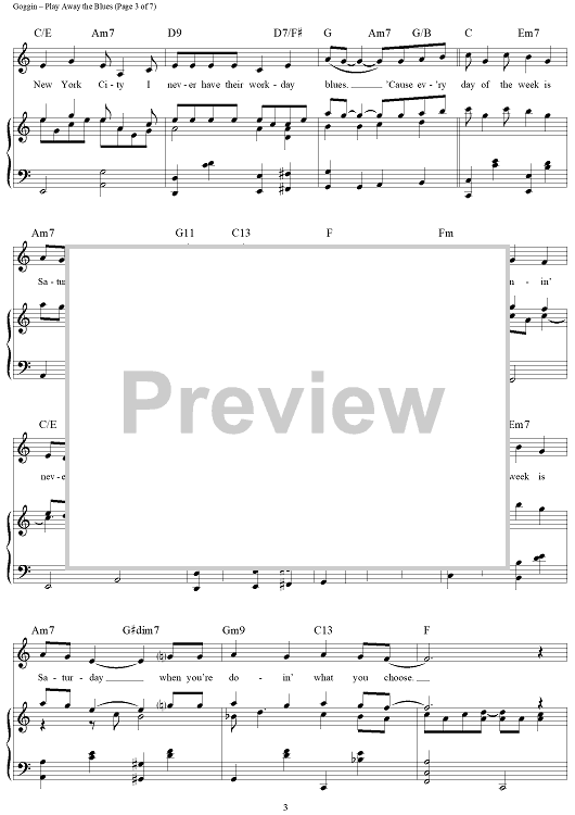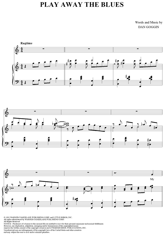 Digital Sheet Music for Play Away the Blues by Dan Goggin scored for Piano/Vocal/Chords; id:313577