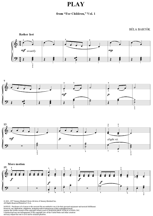 "Play" Sheet Music by Bela Bartok