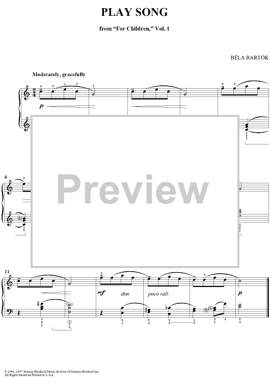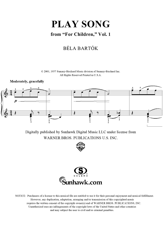 Digital Sheet Music for Play Song by , Bela Bartok scored for Piano Solo; id:287595