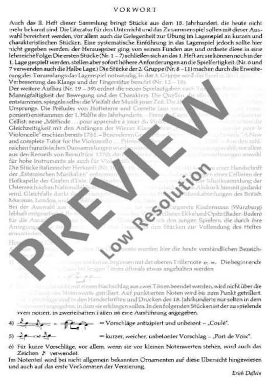 Auch das 2. Heft dieser Sammlung bringt Stücke aus dem 18. Jahrhundert, die heute nicht mehr bekannt sind. Die Literatur für den Unterricht und das Zusammenspiel sollen mit dieser Auswahl bereichert werden, vor allem auch die Gelegenheit zur Übung im Lagenspiel an kurzen und charakteristischen Stücken.