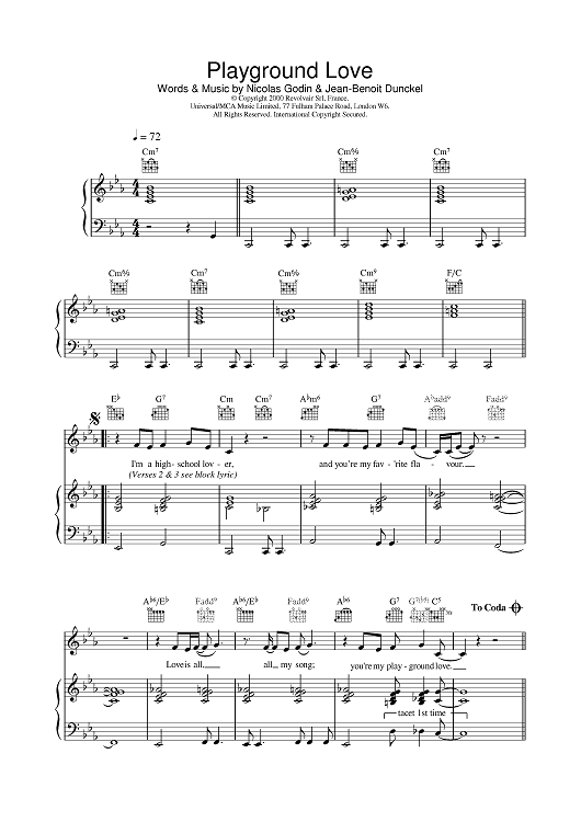 Digital Sheet Music for Playground Love by Air scored for Piano/Vocal/Chords; id:377256