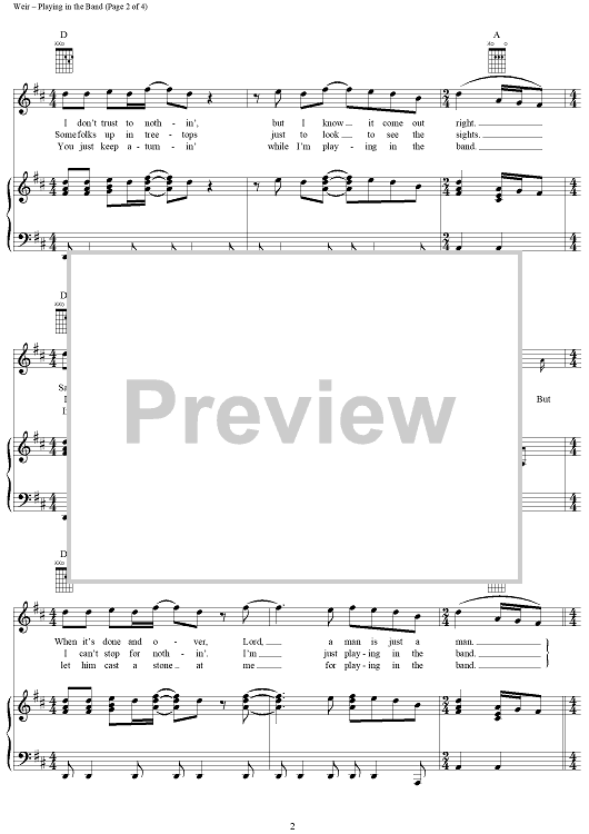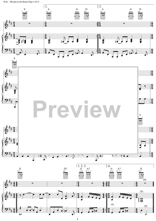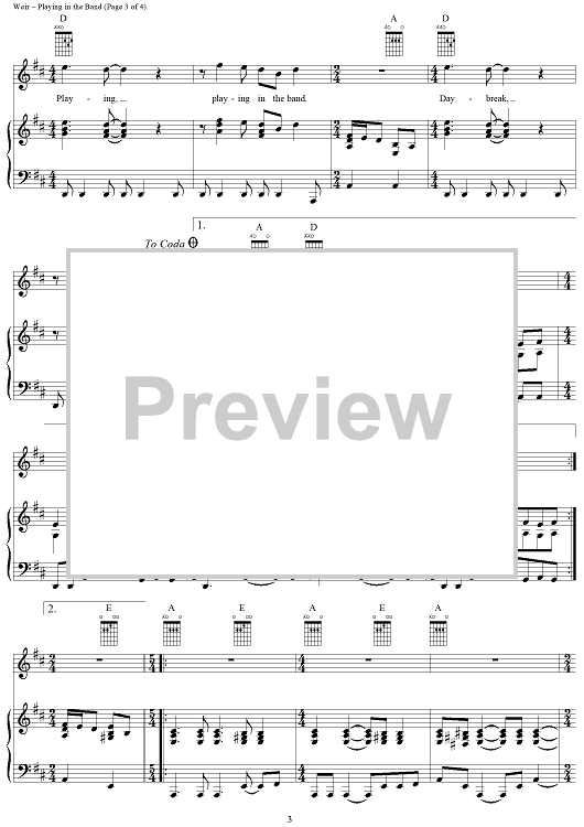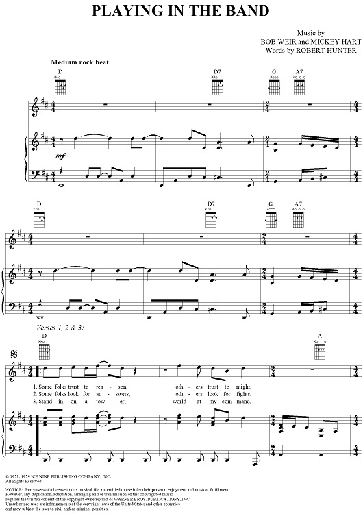Digital Sheet Music for Playing in the Band by Robert Hunter, Bob Weir, Mickey Hart, Grateful Dead scored for Piano/Vocal/Chords; id:264075