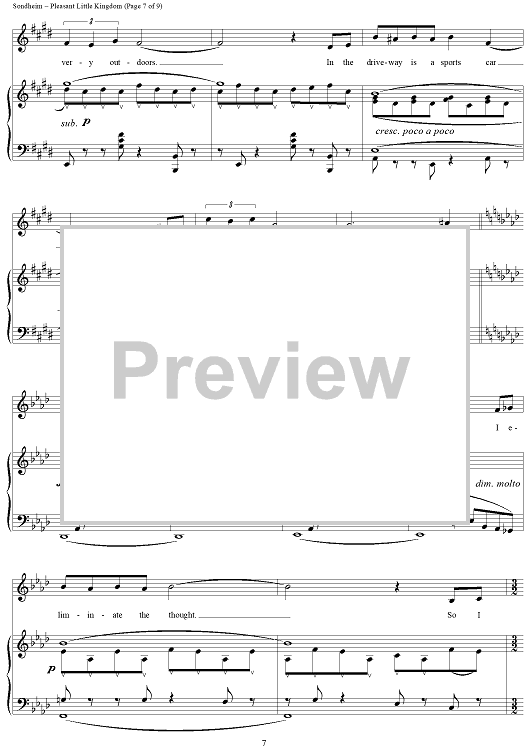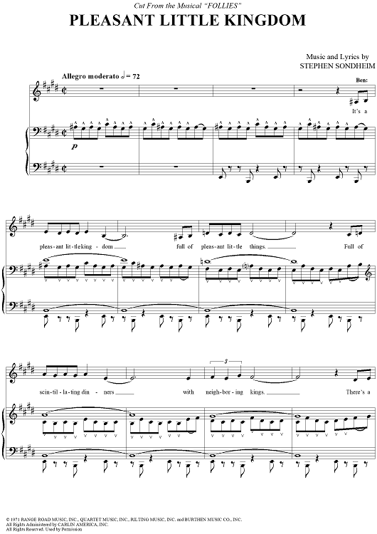 Digital Sheet Music for Pleasant Little Kingdom by Stephen Sondheim scored for Piano/Vocal; id:259222