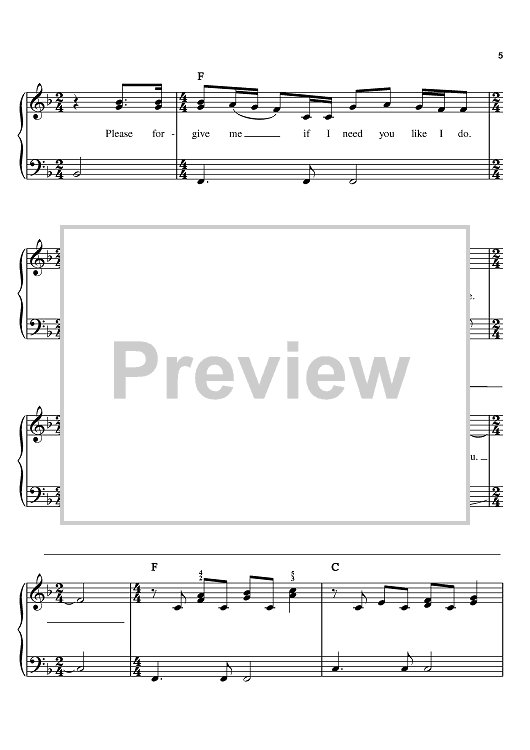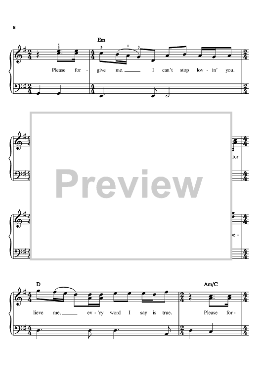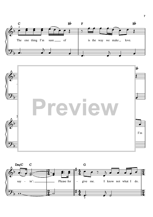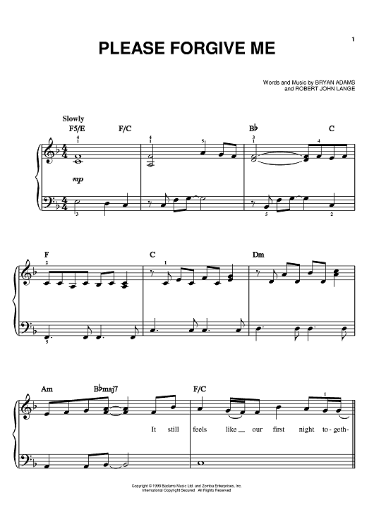 Digital Sheet Music for Please Forgive Me by Bryan Adams, Robert Lange scored for Easy Piano; id:371918