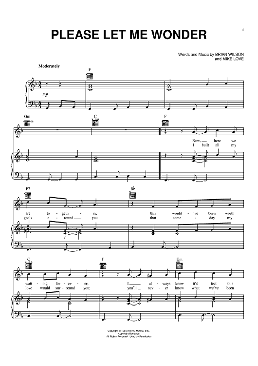 "Please Let Me Wonder" Sheet Music by The Beach Boys