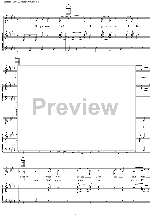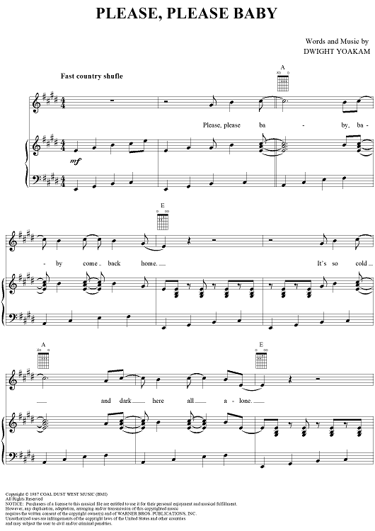 Digital Sheet Music for Please, Please Baby by Dwight Yoakam scored for Piano/Vocal/Chords; id:241251