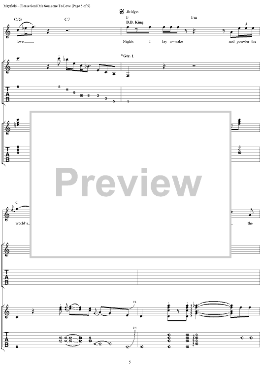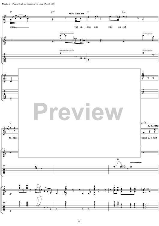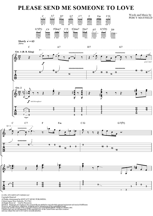 Digital Sheet Music for Please Send Me Someone to Love by B.B. King, Percy Mayfield, Mick Hucknall scored for Guitar Tab/Vocal; id:112930