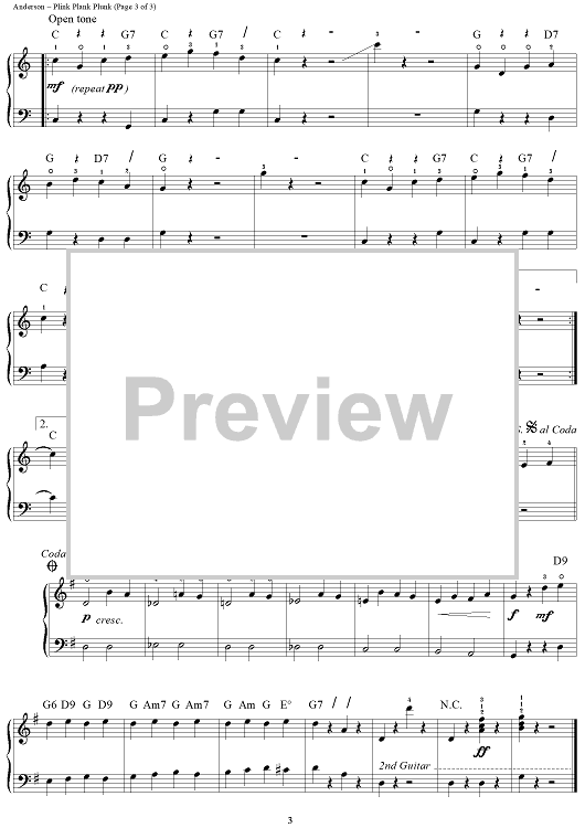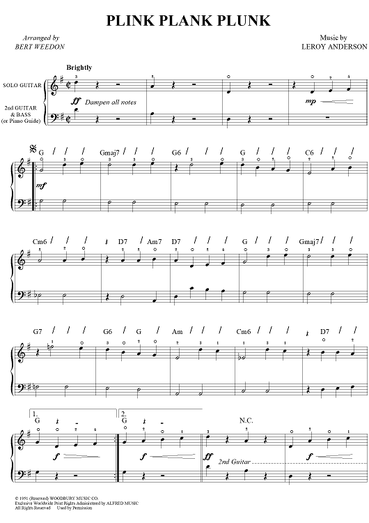 Digital Sheet Music for Plink Plank Plunk by Leroy Anderson, Bert Weedon scored for Guitar Solo (with optional accompaniment); id:416433