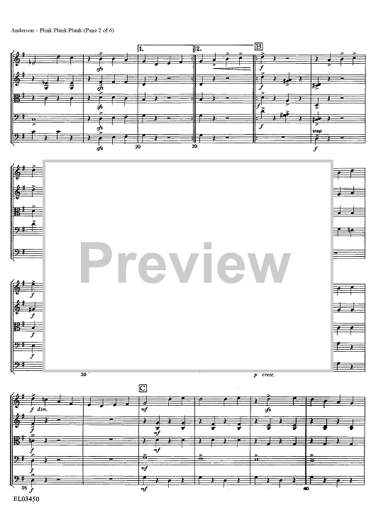 "Plink, Plank, Plunk - Score" Sheet Music by Leroy Anderson