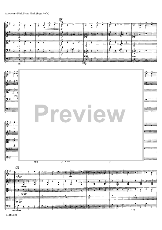 Digital Sheet Music for Plink, Plank, Plunk - Score by Leroy Anderson, William Zinn scored for String Orchestra; id:444245