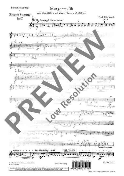 "Plöner Musiktag - 2nd Part In C And Bb" Sheet Music by Paul Hindemith