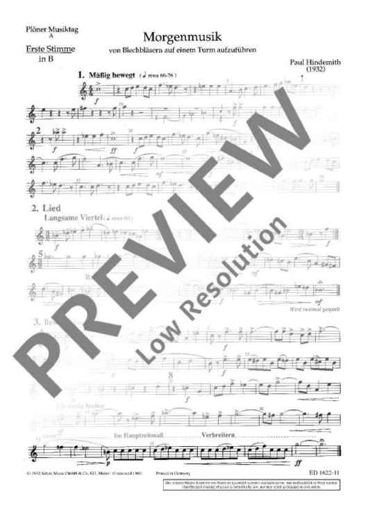 Digital Sheet Music for Plöner Musiktag by Paul Hindemith scored for 2 Trumpets (flugelhorns), 2 Trombones (horns) And Tuba Ad Libitum; id:472441