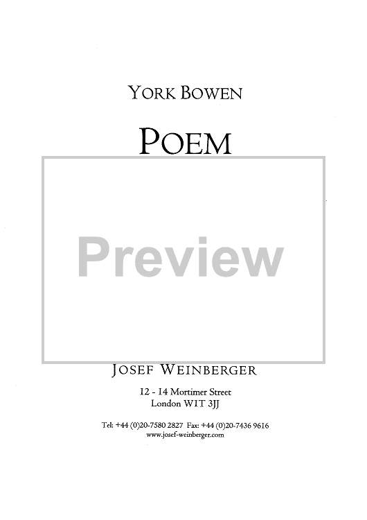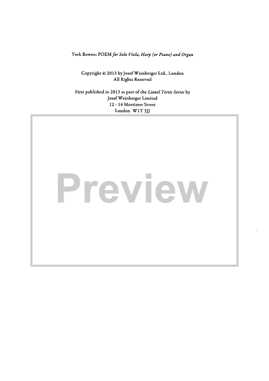 Digital Sheet Music for Poem - Organ Score by York Bowen scored for Viola/Harp/Organ; id:440978