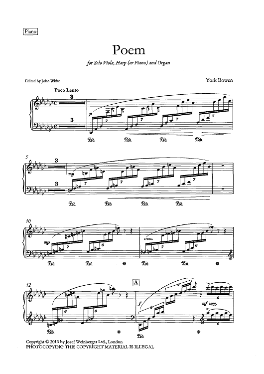 Digital Sheet Music for Poem - Piano by York Bowen scored for Viola/Harp/Organ; id:440977
