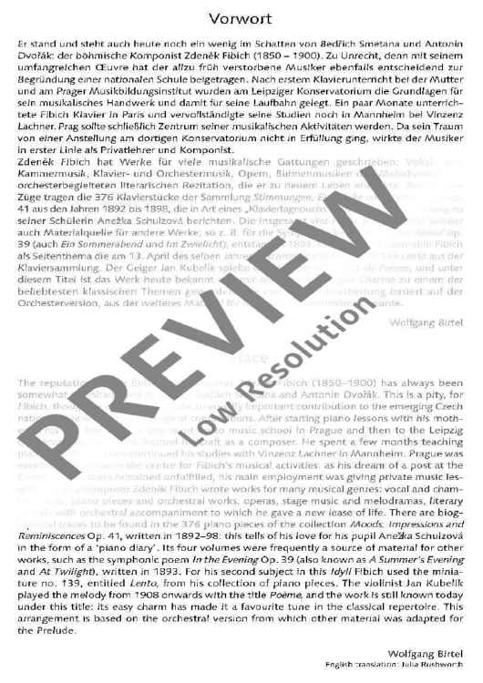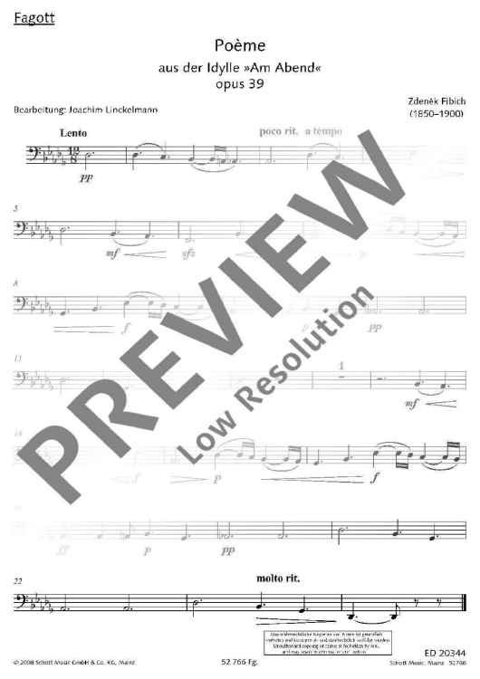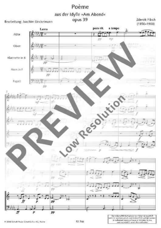 "Poème - Score and Parts" Sheet Music by Zdenek Fibich