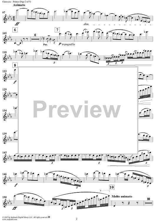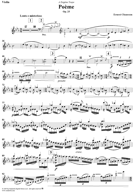 Digital Sheet Music for Poème - Violin by Ernest Chausson scored for Violin/Piano; id:312202