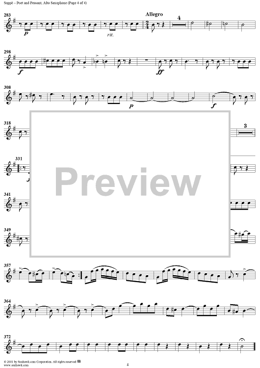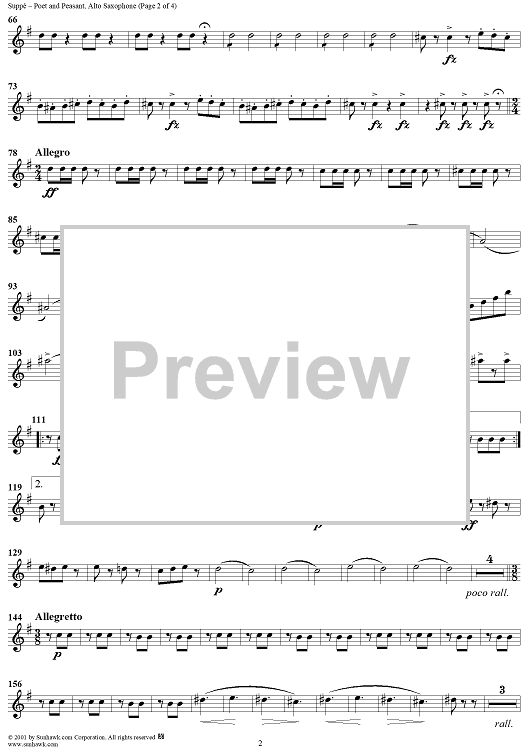 "Poet and Peasant: Overture - Alto Saxophone" Sheet Music by Franz Von Suppe
