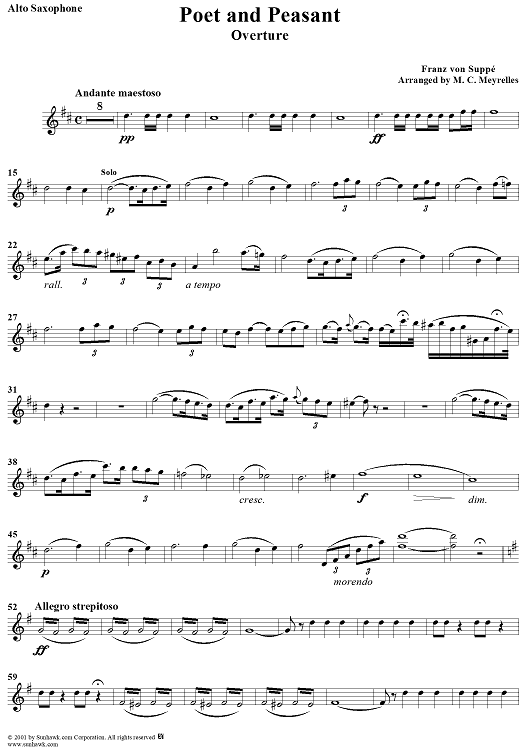 Digital Sheet Music for Poet and Peasant: Overture - Alto Saxophone by Franz Von Suppe, M. C. Meyrelles scored for Concert Band; id:278379