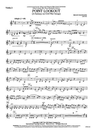 "Point Lookout (A Fantasy on Civil War Songs) - Violin 2" Sheet Music by Brian Balmages