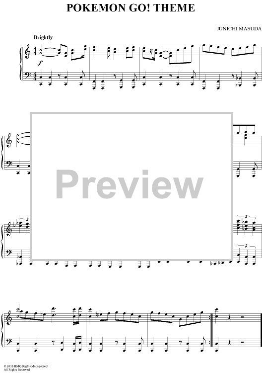 "Pokémon Go! Theme" Sheet Music by Junichi Masuda