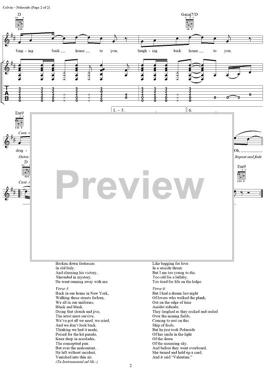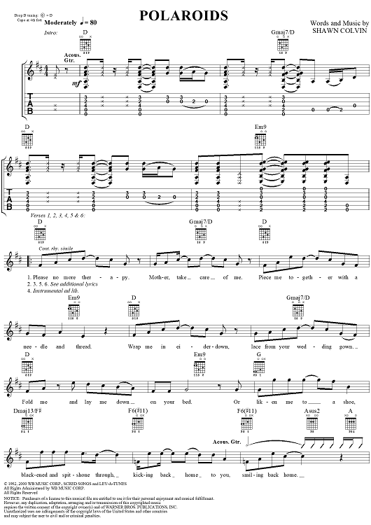 Digital Sheet Music for Polaroids by Shawn Colvin scored for Easy Guitar Tab/Vocal; id:235424