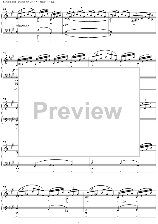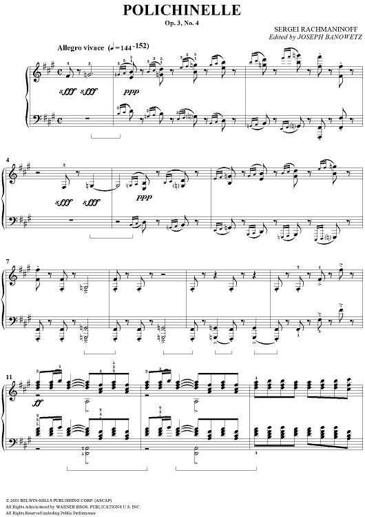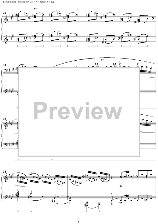 Digital Sheet Music for Polichinelle, Op. 3, No. 4 by Sergei Rachmaninoff scored for Piano Solo; id:315399