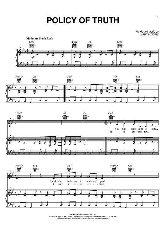 Digital Sheet Music for Policy Of Truth by Martin Gore, Depeche Mode scored for Piano/Vocal/Chords; id:396242