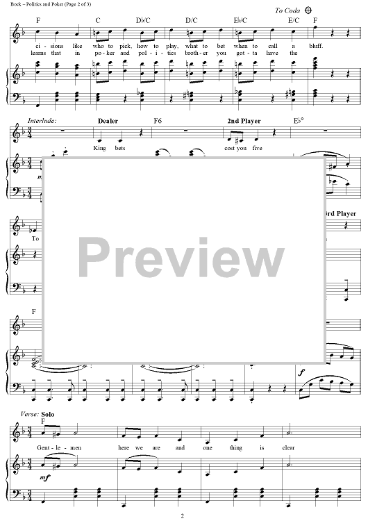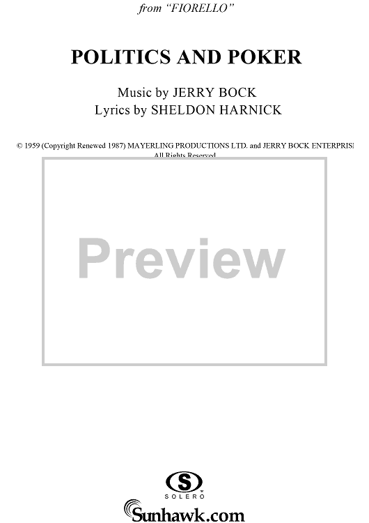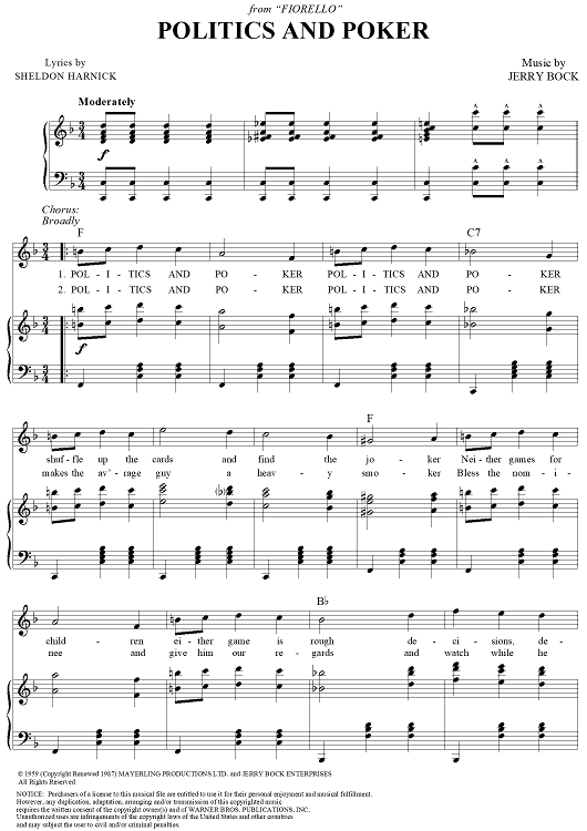 Digital Sheet Music for Politics and Poker by Jerry Bock, Sheldon Harnick scored for Piano/Vocal/Chords; id:112879