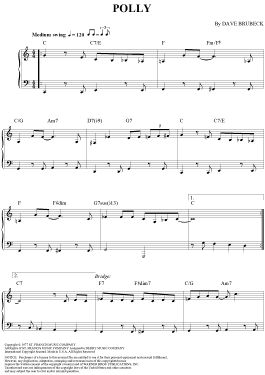 Digital Sheet Music for Polly by Dave Brubeck scored for Piano Solo; id:275559