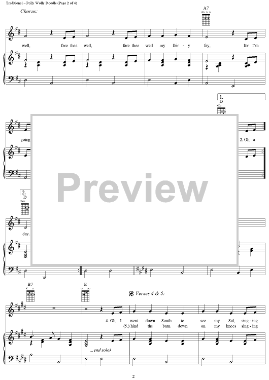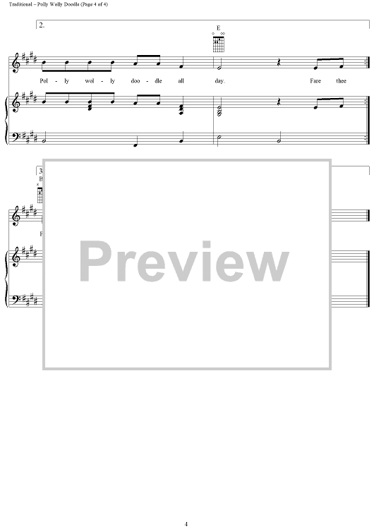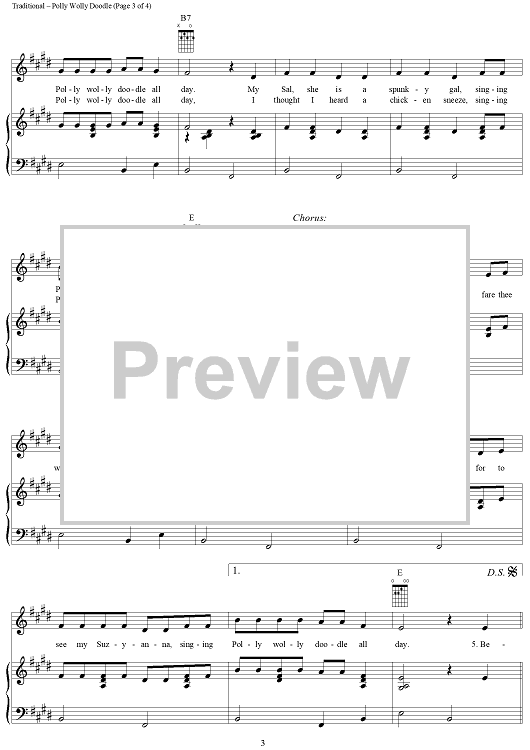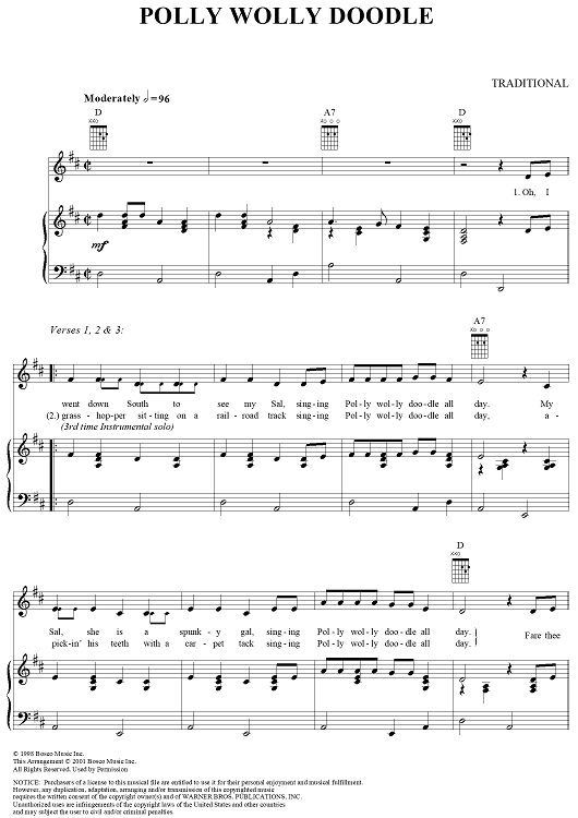Digital Sheet Music for Polly Wolly Doodle by Traditional scored for Piano/Vocal/Chords; id:289171