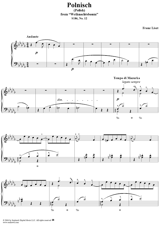 Digital Sheet Music for Polnisch, No. 12 from "Weihnachtsbaum", S186 by Franz Liszt scored for Piano Solo; id:295009