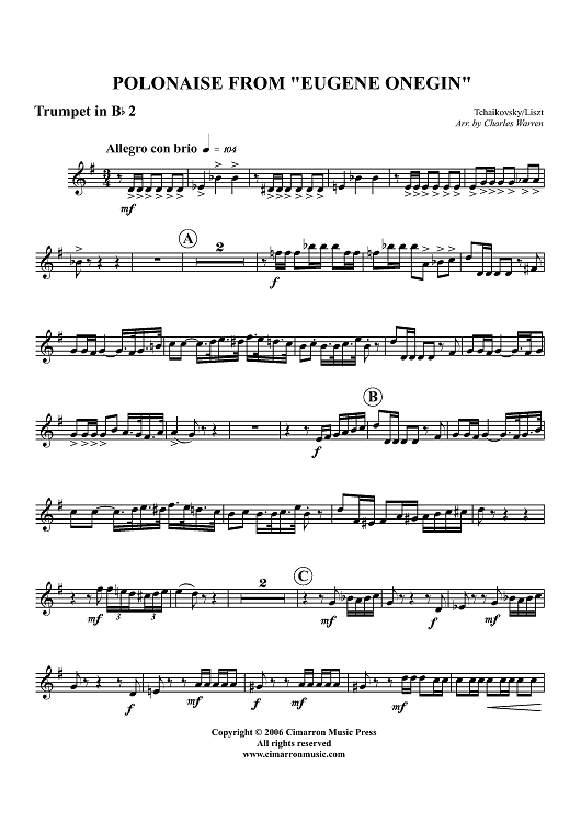 "Polonaise from "Eugene Onegin" - B-flat Trumpet 2" Sheet Music by Peter Ilyich Tchaikovsky