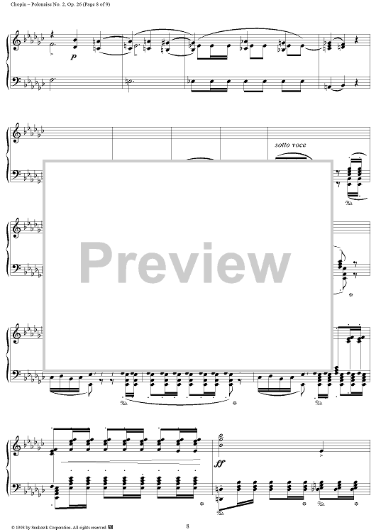 Digital Sheet Music for Polonaise No. 2 in E-flat Minor, Op. 26, No. 2 ("Les favorites 2") by Frederic Chopin scored for Piano Solo; id:259037