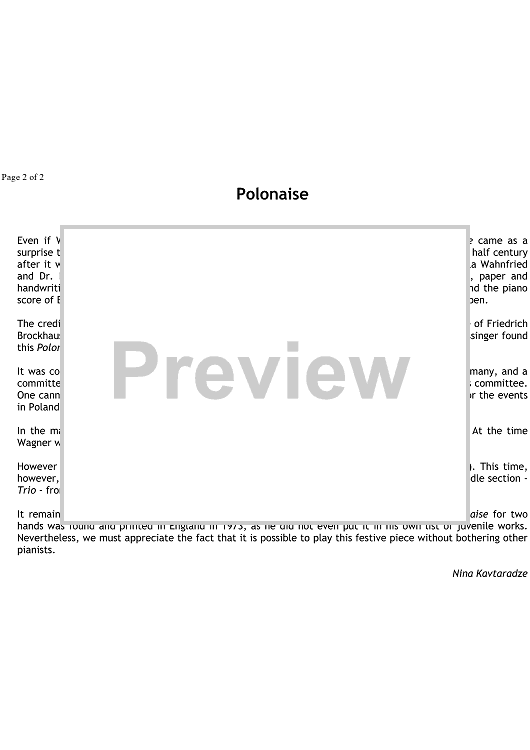 Digital Sheet Music for Polonaise - Preface by , Richard Wagner scored for Preface; id:328114