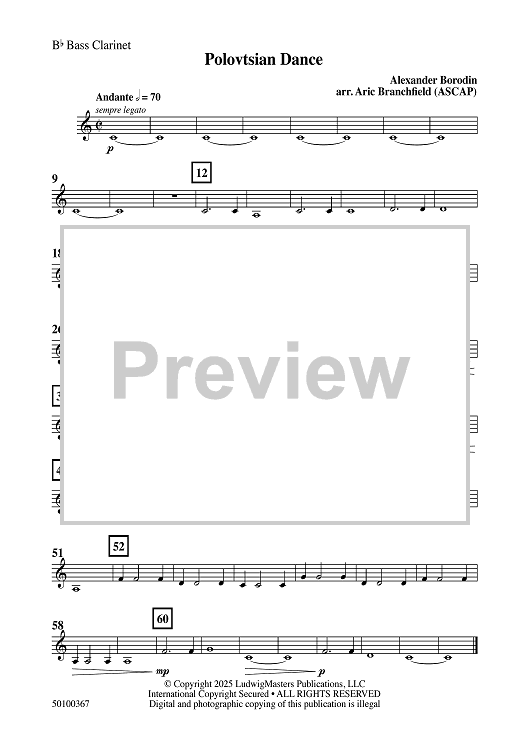 Digital Sheet Music for Polovtsian Dance - Bb Bass Clarinet by Alexander Borodin, Aric Branchfield scored for Concert Band; id:509351