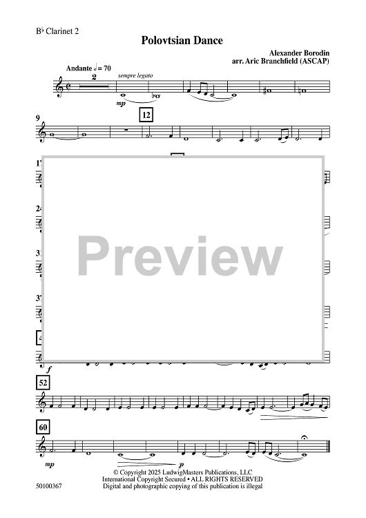 Digital Sheet Music for Polovtsian Dance - Bb Clarinet 2 by Alexander Borodin, Aric Branchfield scored for Concert Band; id:509350