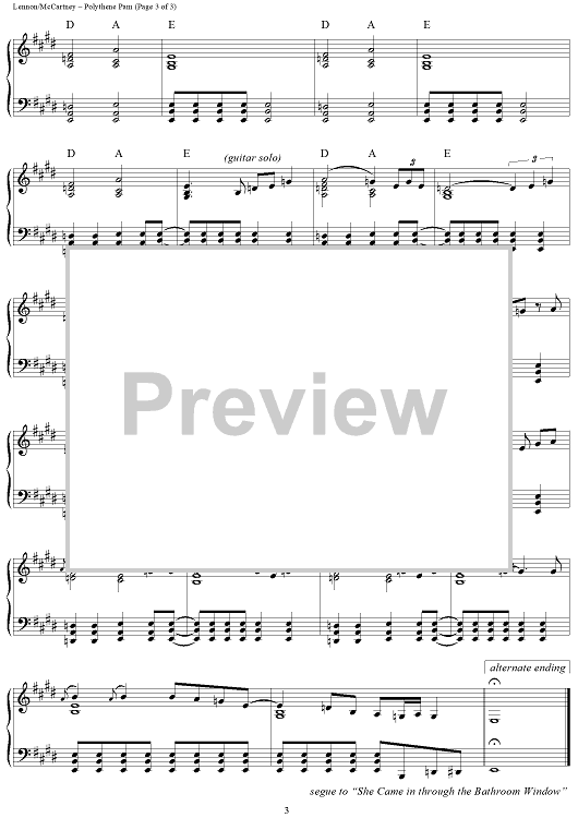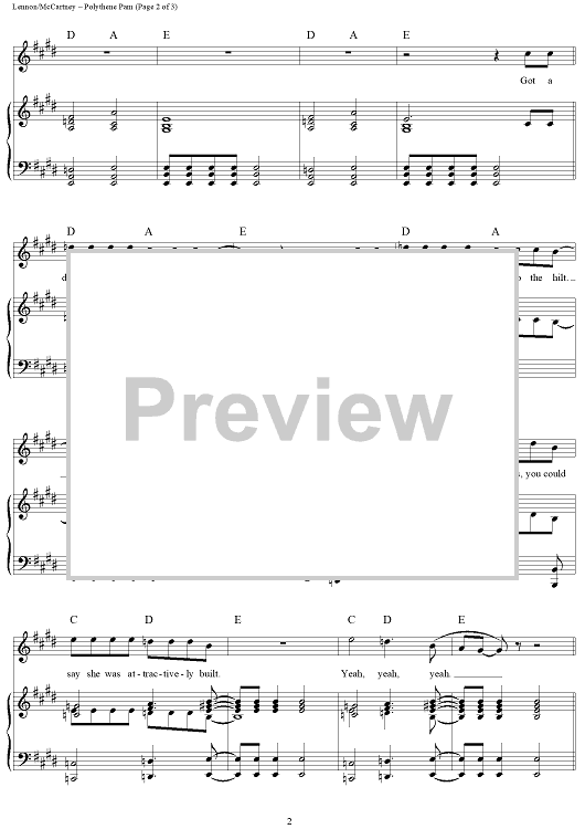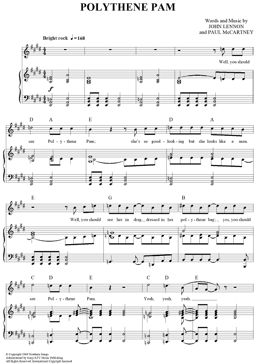 Digital Sheet Music for Polythene Pam by Paul McCartney, The Beatles, John Lennon scored for Piano/Vocal/Chords; id:362353