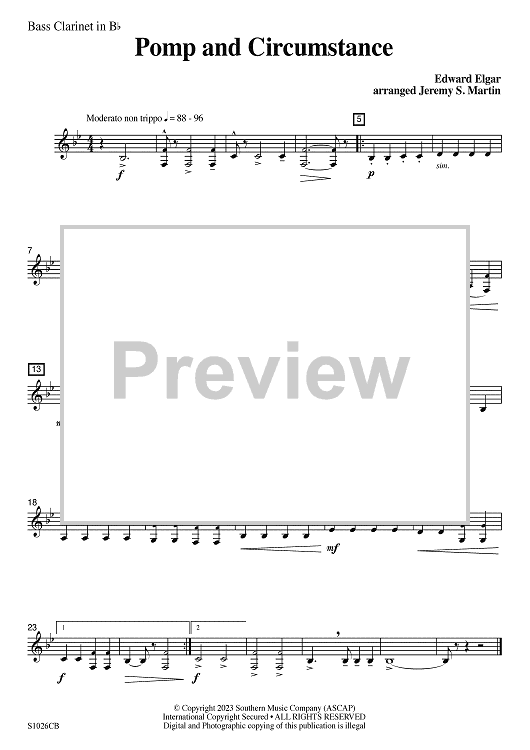 Digital Sheet Music for Pomp and Circumstance (easy) - Bb Bass Clarinet by Edward Elgar, Jeremy S. Martin scored for Concert Band; id:502356