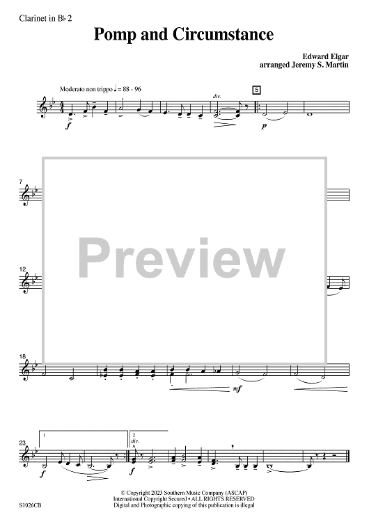 Digital Sheet Music for Pomp and Circumstance (easy) - Bb Clarinet 2 by Edward Elgar, Jeremy S. Martin scored for Concert Band; id:502355