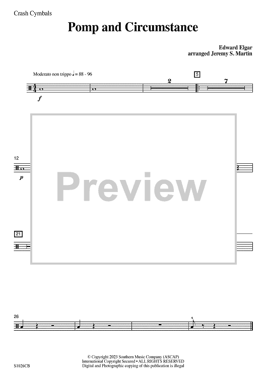 Digital Sheet Music for Pomp and Circumstance (easy) - Crash Cymbals by Edward Elgar, Jeremy S. Martin scored for Concert Band; id:502374